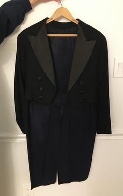 Tuxedo originated from Singin' in the Rain" (1952). The internal MGM labeling and handwriting style are consistent with other verified Gene Kelly wardrobe pieces from that production. The suit has likely undergone some alternation over the years (notably the lapels and buttons, likely from later reuse by the studio), the core garment remains consistent with period MGM tailoring and Gene Kelly's wardrobe patterns.