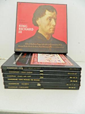 This lot of 8 LP record sets from the Shakespeare Recording Society features seven performances of plays by William Shakespeare. The records are in the standard 12" size and made out of durable vinyl material. Each record comes in classic black color and is labeled with the corresponding play and artist. These records are a must-have for any music or Shakespeare enthusiast and will make a great addition to any collection.