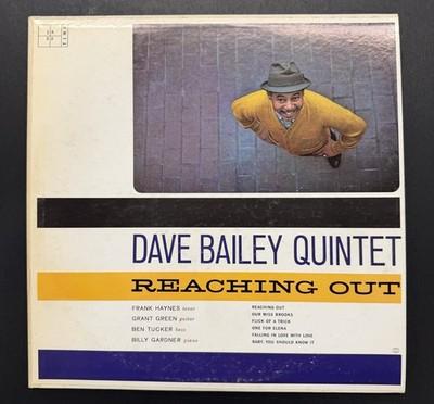 This is the original deep groove pressing of Dave Bailey “Reaching Out” on Jazz Time JT-003. The playing surface is in near-new condition, with a high luster. The coated cover is in excellent condition, with sharp corners; the bottom seam has ¼” wear at the spine and 1/16” split at the opening. Personnel include Frank Haynes, Grant Green, Ben Tucker, and Billy Gardner. $400.00.