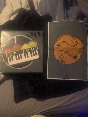 The Jack Stauber "Pop Food" LP is a limited edition vinyl record featuring electropop and electro/synth music. The record is a 12" size on black vinyl with colored vinyl features, housed in a cardboard sleeve. The artist's unique style and pop genre make this a sought-after addition to any music collector's library.