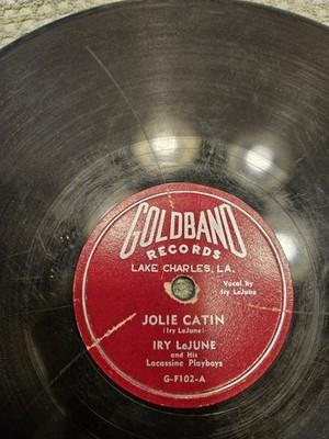 The product is a rare 78 RPM single record by Iry LeJune, featuring the songs "Jolie Catin" and "La Valse de Cajin" Released under the record label Goldband, the record is made of shellac and is formatted in 10" size. The language of the songs is French, and they fall under the Cajun genre, showcasing the artist's unique style of Cajun French music. This collectible piece of vinyl is a valuable addition to any music enthusiast's collection, offering a glimpse into the rich history and culture of Cajun music.