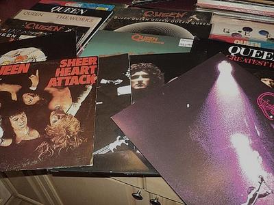 READ Whole auction before you bid! Queen lot: First album S/T Queen EMI Germany reissue vg+/vg+......Queen II Hollywood Records vg+/vg+......Sheer Heart Attack w/ poster vg+/vg...Day A The Races Hollywood records vg+/vg+.....Night At The Opera vg/vg- some stains on cover...Jazz w/ clean banned Bicycle race poster vg+/vg... News Of The World 2 copies: vg+/vg+..vg+/vg..Japan import w/ clean OBI The Game vg+/vg+....2 lp Live Killers vg+/vg+..12" single Promo Pain Is So Close to Pleasure vg+/vg+ circular punch hole.....See Picture 2: both Sealed import 2 lps.....The Works vg+/vg+.....Miracle Sealed Half Speed Mastered.....Live Magic vg+/vg+...Kind of Magic Sealed 180 gram Half Speed.... Queens Greatest Hits 2 copies: 2 lp Splatter Red Vinyl nm/vg+.. Sealed 2 lp 180 gram ...Sealed Blue Vinyl Bohemian Rhapsody 12" single......Innuendo 2 lp Sealed Half Speed Mastered.....Hot Space 2 copies : Sealed Yellow Vinyl Walmart Exclusive Half Speed Mastered...vg+/vg....RARE!.......Note:Do Not email us and ask if item shipped or to accuse us of not shipping-we are telling you in advance:Shipping within 4 days of payment.We do not mark as shipped or upload tracking numbers-same way we have done for 23+ years.23+ years means no need to send email saying has it shipped? as you do not need to be reassured we will carry out the terms listed...Do not buy from us then complain about the terms or start trouble because you forgot to read them!Buying from us means you agree to these terms.This is a site for serious record buyers-99% of Ebayers ok-the 1% is ruining it for us all and making selling on Ebay like 7 days of root canal....Note:1% ers:we do not need your money bad enough to deal with mental cases.If this offends you do us both a favor and move on!