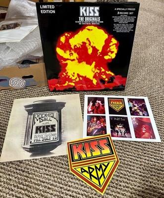 On auction is a cool lot. The German censored logo version of KISS Off the Soundboard still sealed 3 lp set. Cover has some creasing. Records new and unplayed.